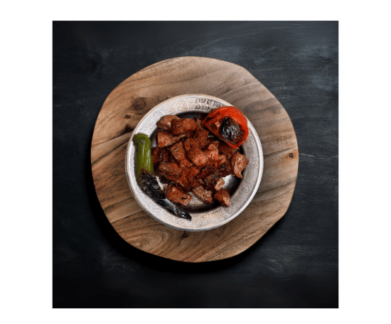 Orta yağlı kuzu kıyma, kuzu kuşbaşı, domates, sarımsak, maydonoz, kırmızı biber ve baharatlar ile yapılır.