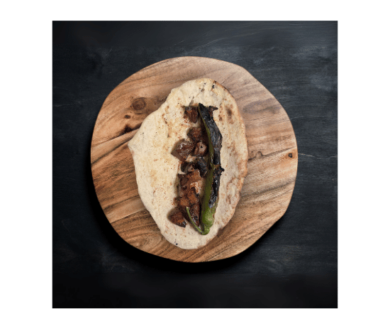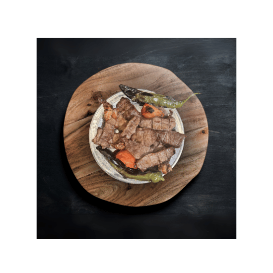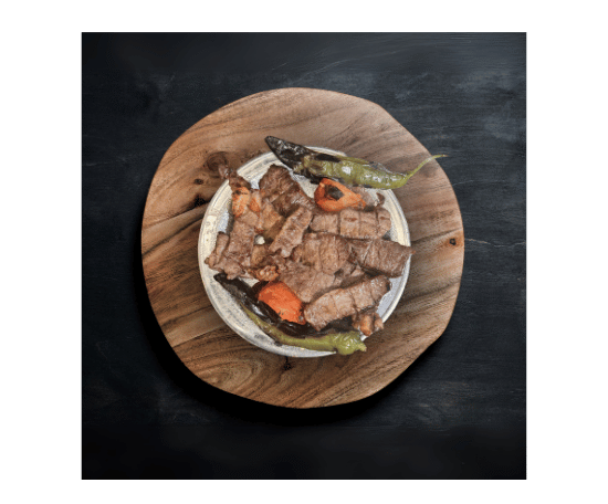 Kuzu eti, pulbiber ve baharatlar ile yapılır.
